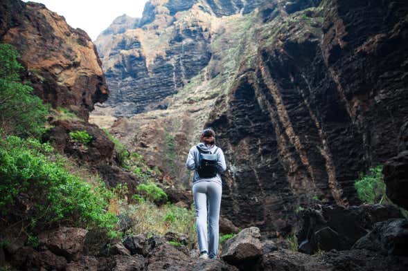 El camino nos llevará hasta la playa de Masca, una bahía salvaje a la que solo se puede acceder en barco o a pie. Descansaremos escuchando el sonido del mar y admirando los acantilados de Los Gigantes, que superan los 450 metros de altura, antes de iniciar el camino de ascenso por el barranco.